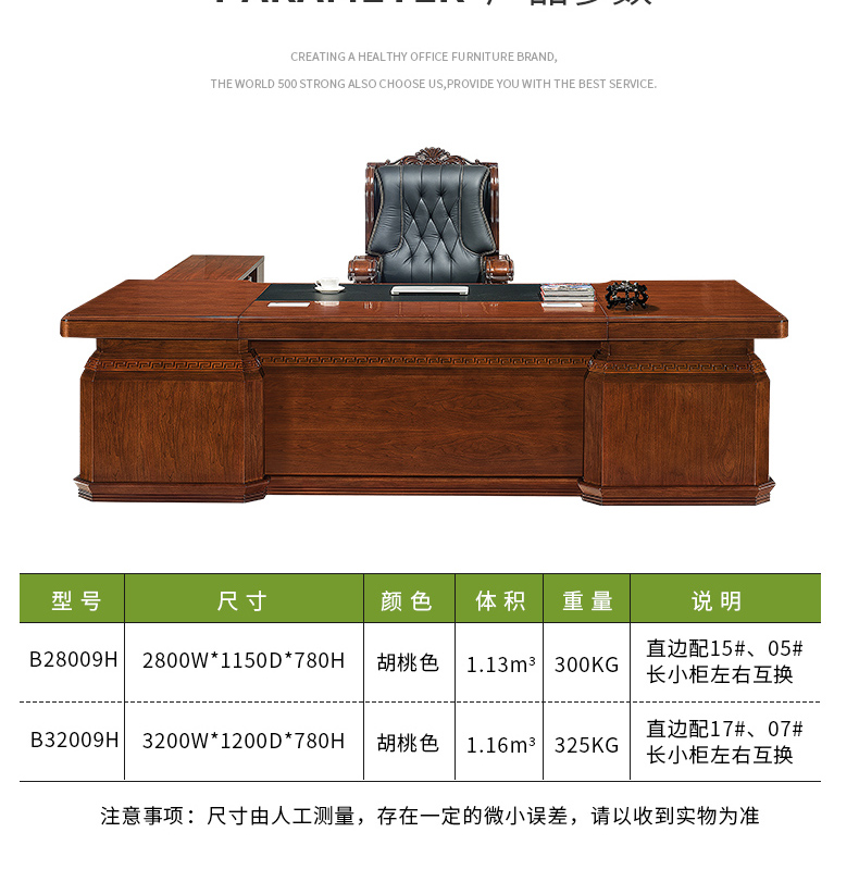 胡桃色實木油漆大班臺B16015H