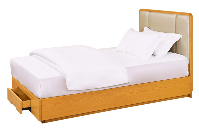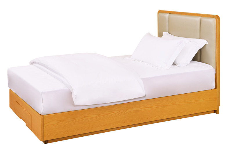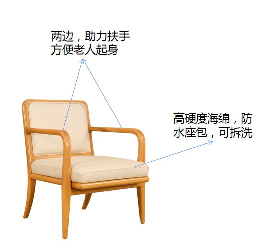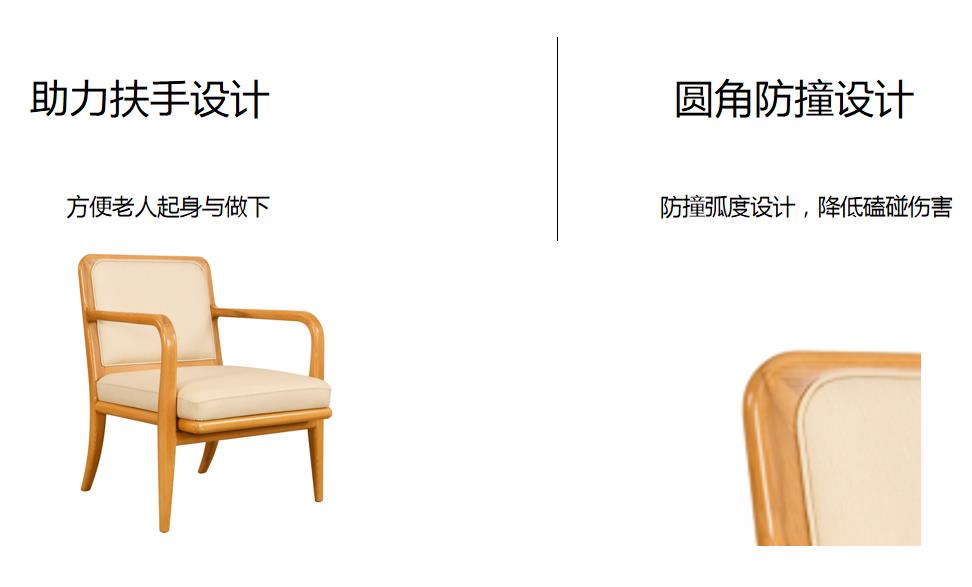 基材:為實(shí)木白蠟?zāi)究蚣芙Y(jié)構(gòu),臺(tái)面多層板貼白蠟?zāi)酒ぁ?床屏軟包,便于老人倚靠